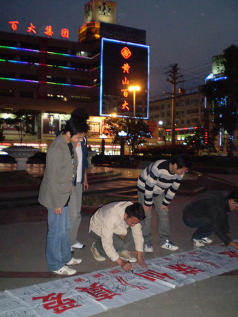 今天同样在完美的工作人员的帮忙下做了签字。条幅好像都快写满了!谢谢大家的支持!