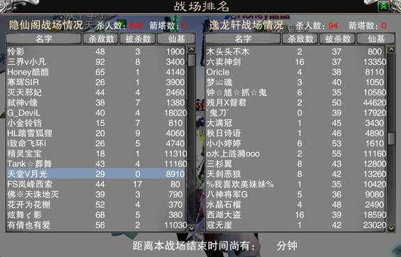 这两个帮派本身我并不熟悉,但是激斗的场面还是令人热血沸腾。最终墨雪~~傲世之颠~~ 以10分优势险胜天龙的忠义