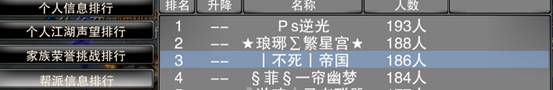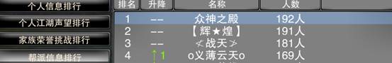 而凤羽服务器的众神之殿虽然直观看来在一些客观因素上不及创世规模庞大,但是实力也是不容小觑的。同样是5级帮派,从他们192的人数上看,应该是召集了大部分的顶级玩家。一个帮派能召集众多人才且留住他们必定在管理与团结上有突出表现。