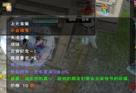 做出极品菜式者将获得:50个太极金丹、特殊称号、上元金鉴(元宵祝福项链);