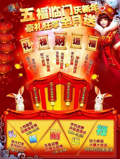 五福临门欢庆新年,兔年到,吉祥到,礼品到,《诛仙2》新年祈福版今日火爆开幕!送礼一整月,全民大狂欢!让你豪礼满仓,欢度新年!