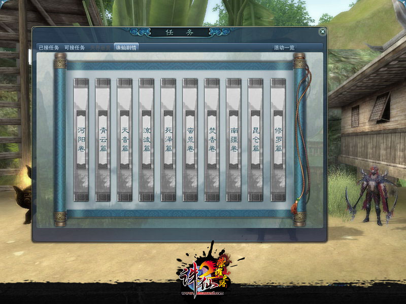 唯美卷轴式任务界面,为你讲述经典诛仙剧情