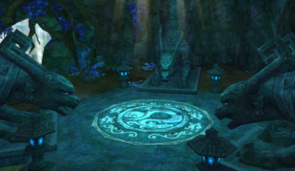一. 玩家穿过铁索桥,山洞,到达第二关(演武场)处,第二关圆台上有回复气血buff光效。