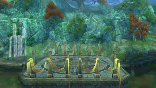 四. 与晕倒的天音弟子npc对话,将其救活。在演武场旁边的开启第二关至第三关传送(三个圆台共六个传送点,若连续三次二选一正确可传送至第三关处,否则回到演武场上),同时开启第三关boss,出生点开启第三关传送。简短的剧情对话,之后第二关所有npc消失。