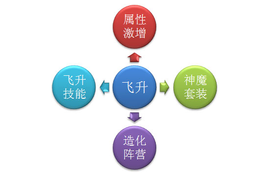 飞升——角色达到135级以上时,能够进入的一种全新修真方向。飞升后,你将会感受到角色脱胎换骨的变化,配备强力的属性套装!使用强悍的飞升技能!更具挑战的众多玩法!飞升将带给你最为极致的修真体验!
