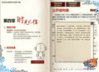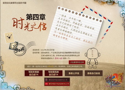 与此同时,玩家还可以在微博上参与“时光之信”的特别征集活动。5月14日前,只需转发http://e.weibo.com/1769175333/yhqoTduB6此活动微博,并@1位好友+你的时光感悟,就有机会获得《诛仙2·时光之书》5年精美纪念册、限量专属尊号“五年诛仙